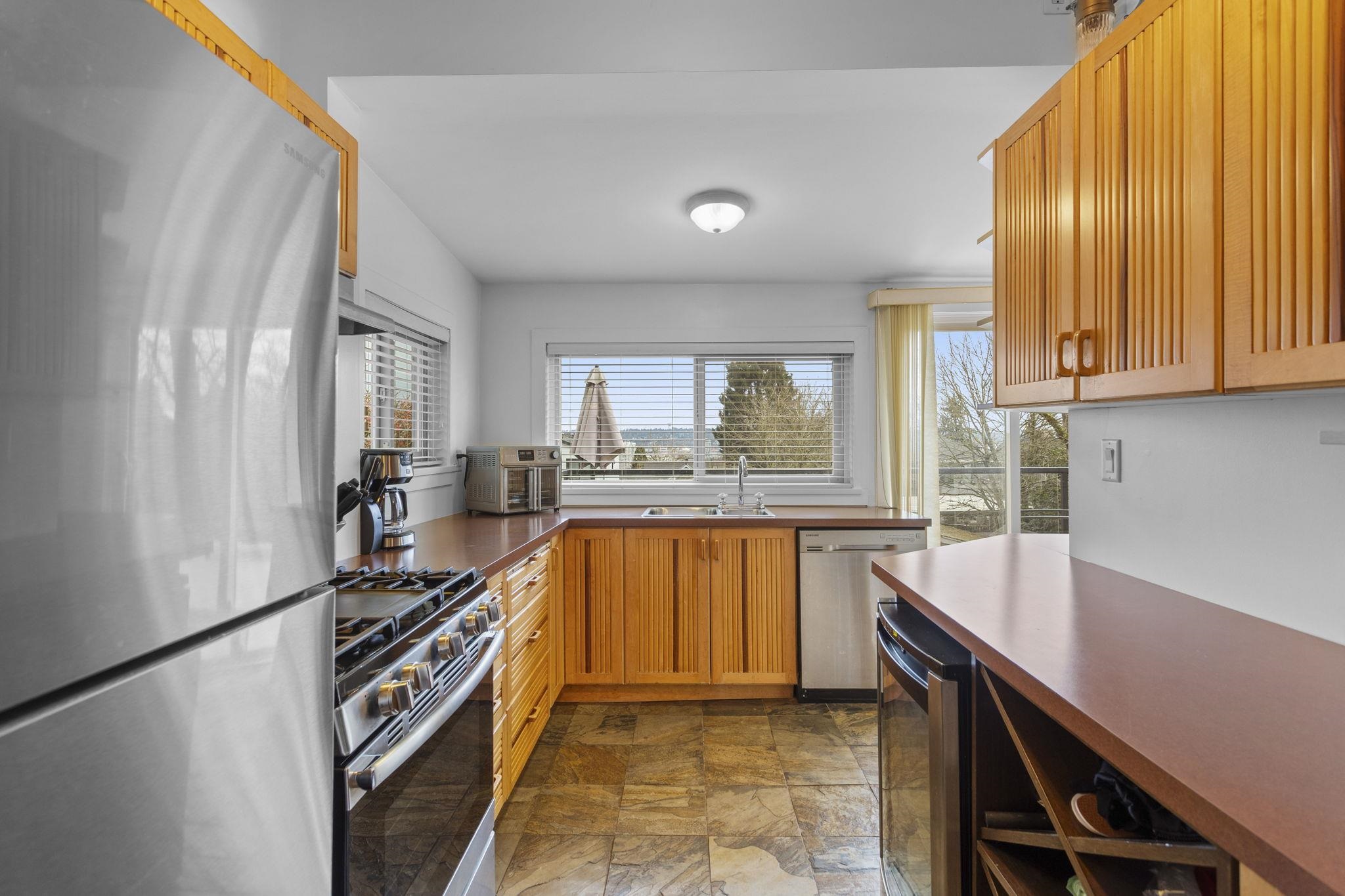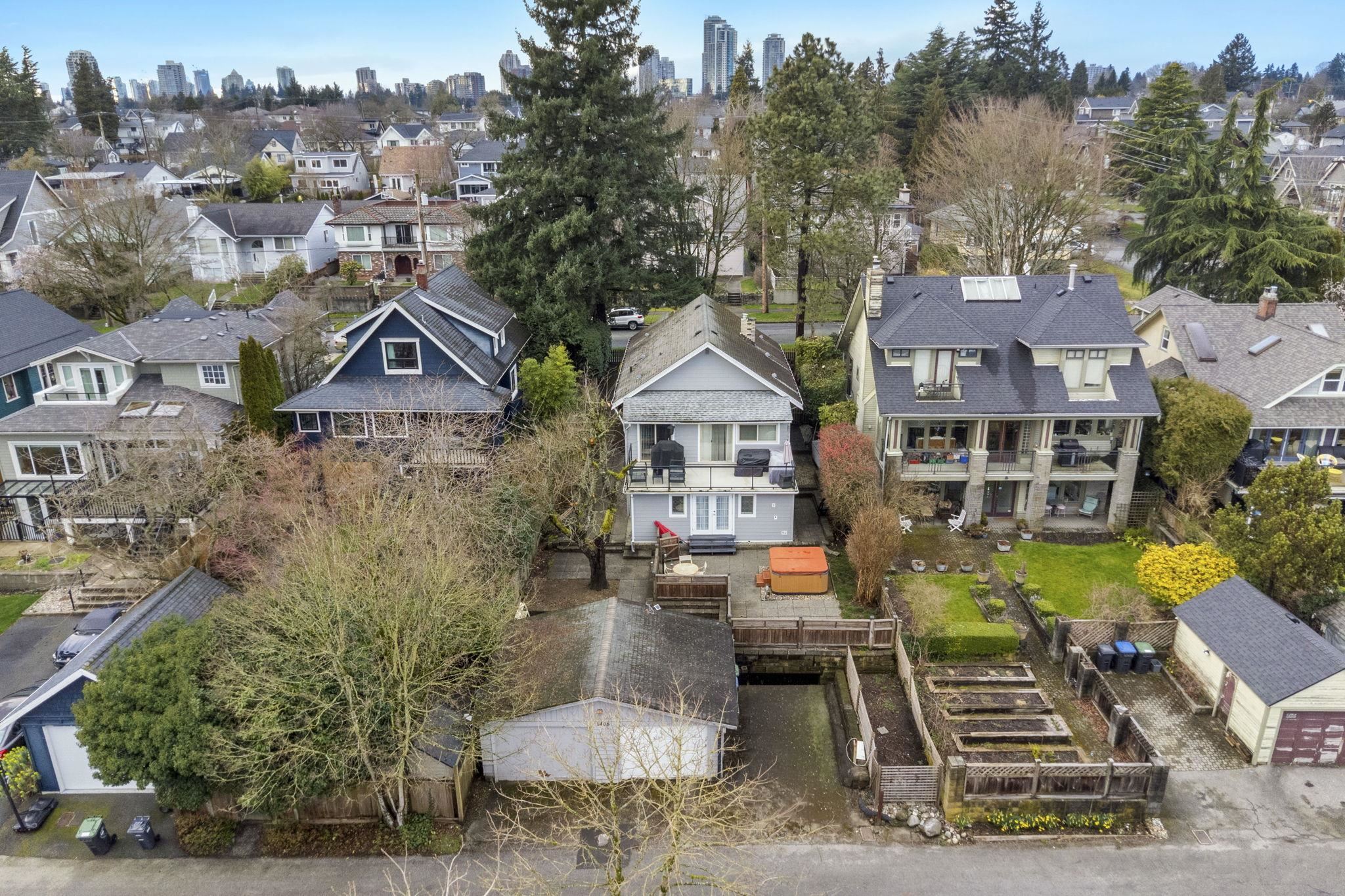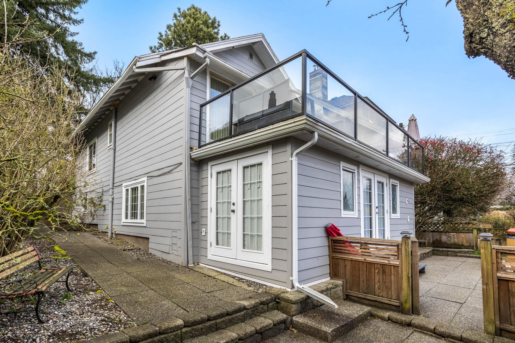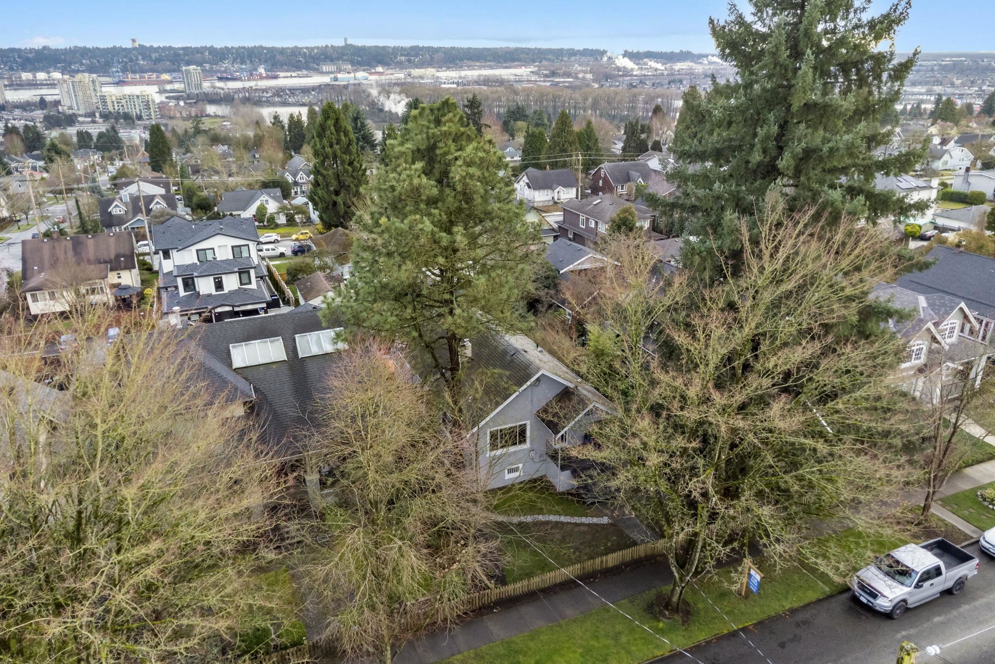 Charming character home with in-law suite on a generous lot, offering breathtaking water and mountain views from an expansive 240 SF sundeck. The private backyard is a true retreat with lush landscaping, hot tub, and plenty of space for entertaining. Thoughtfully updated - windows, kitchen, furnace, hot water tank and exterior improvements. The bright kitchen features maple cabinetry, slate flooring and stunning panoramic views. Garage with convenient lane access and a quiet, family-friendly setting. Located just minutes to shops, restaurants, transit, schools, parks and recreation, blending timeless charm with everyday convenience in one of New Westminster’s most desirable neighbourhoods. Don't miss the opportunity to make this home!
