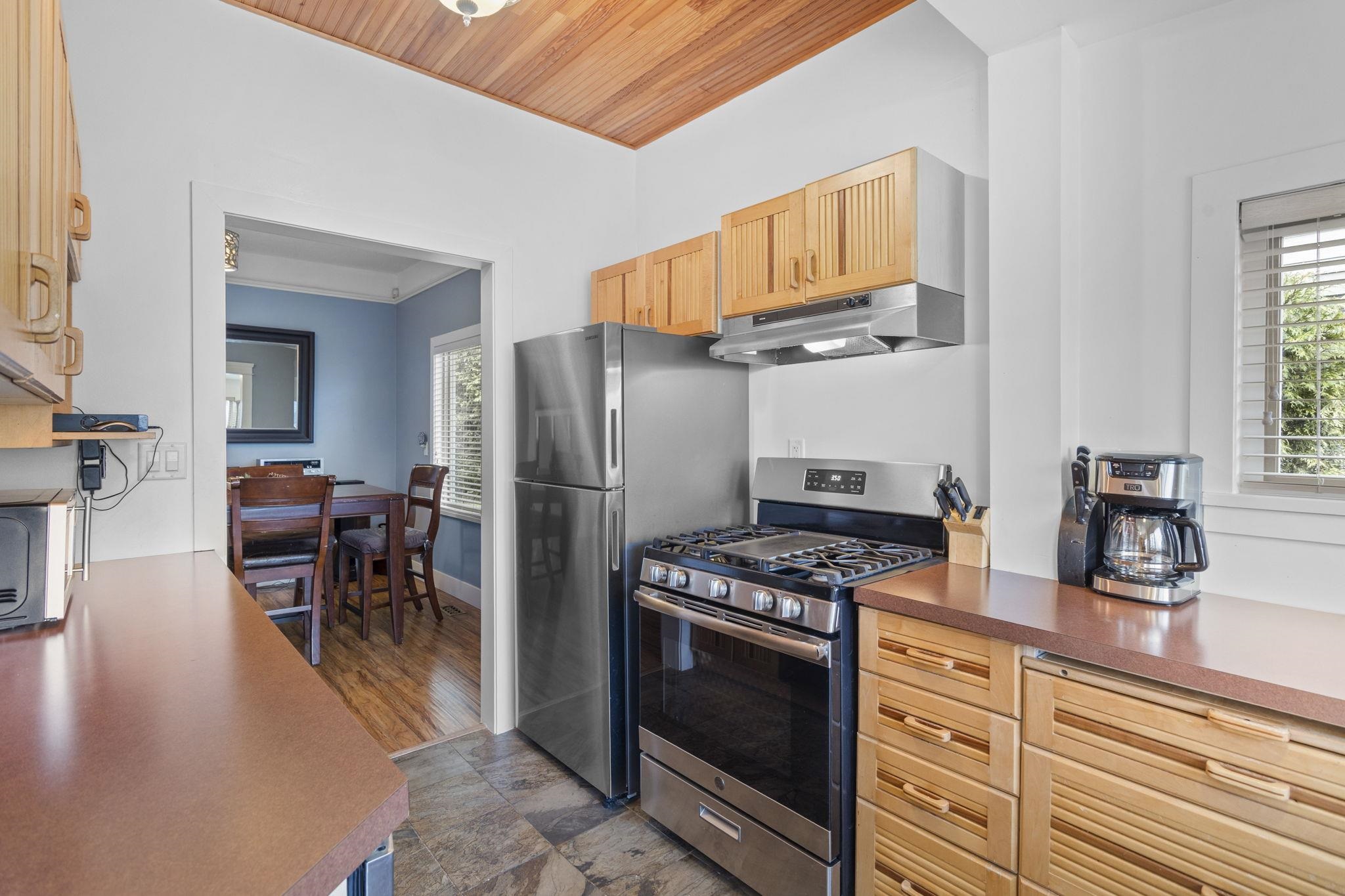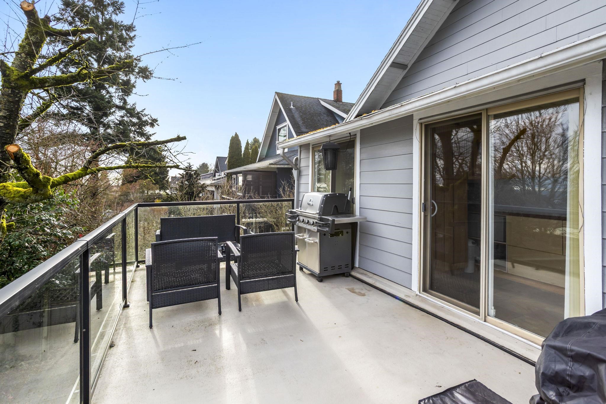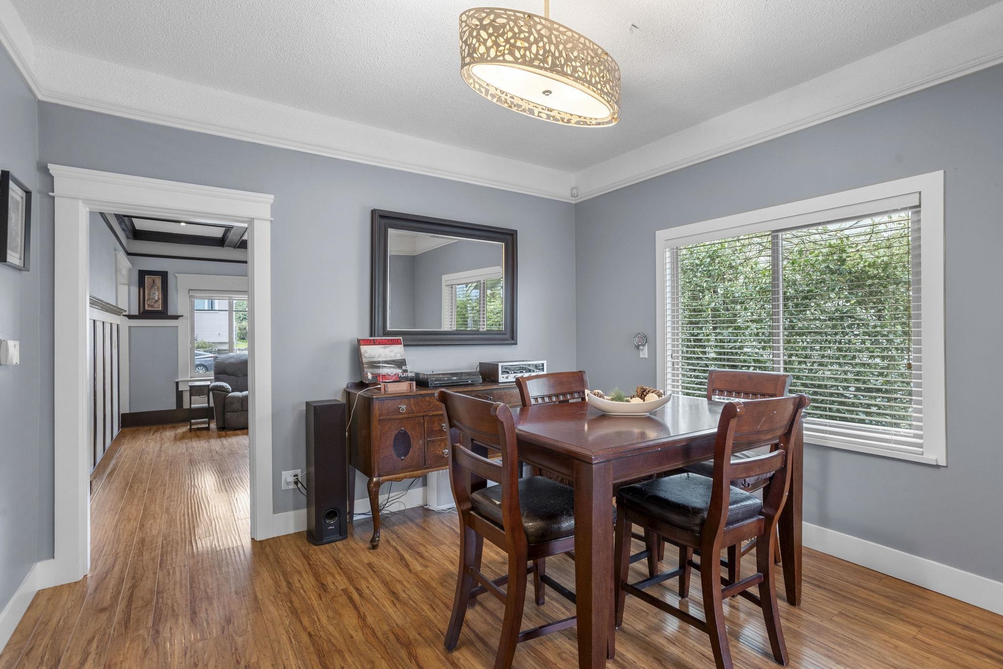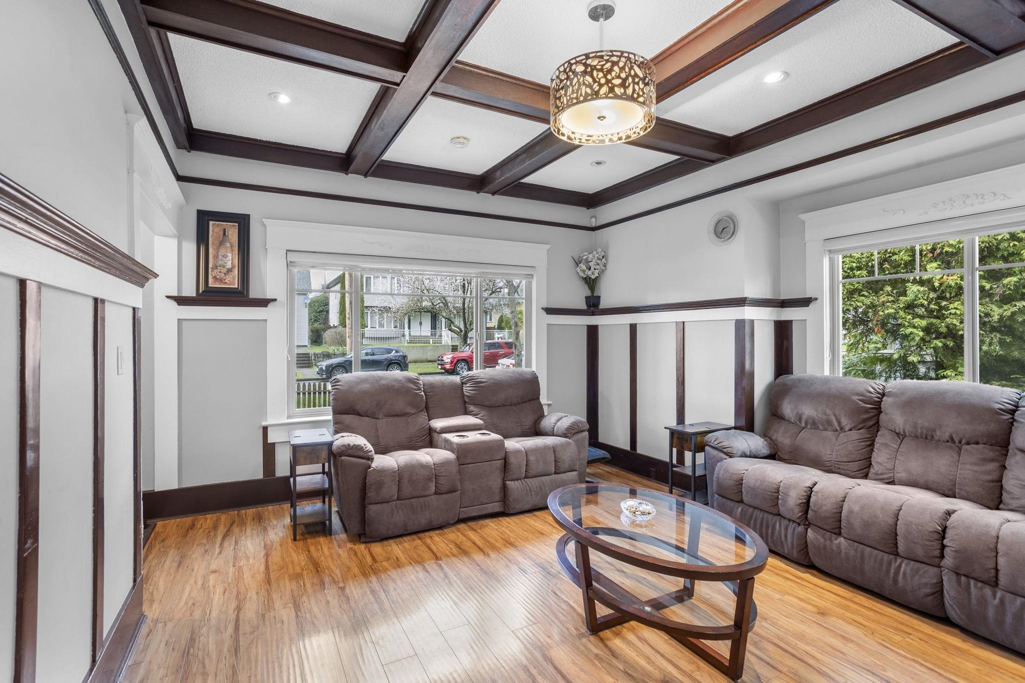 Charming character home with in-law suite on a generous lot, offering breathtaking water and mountain views from an expansive 240 SF sundeck. The private backyard is a true retreat with lush landscaping, hot tub, and plenty of space for entertaining. Thoughtfully updated - windows, kitchen, furnace, hot water tank and exterior improvements. The bright kitchen features maple cabinetry, slate flooring and stunning panoramic views. Garage with convenient lane access and a quiet, family-friendly setting. Located just minutes to shops, restaurants, transit, schools, parks and recreation, blending timeless charm with everyday convenience in one of New Westminster’s most desirable neighbourhoods. Don't miss the opportunity to make this home!