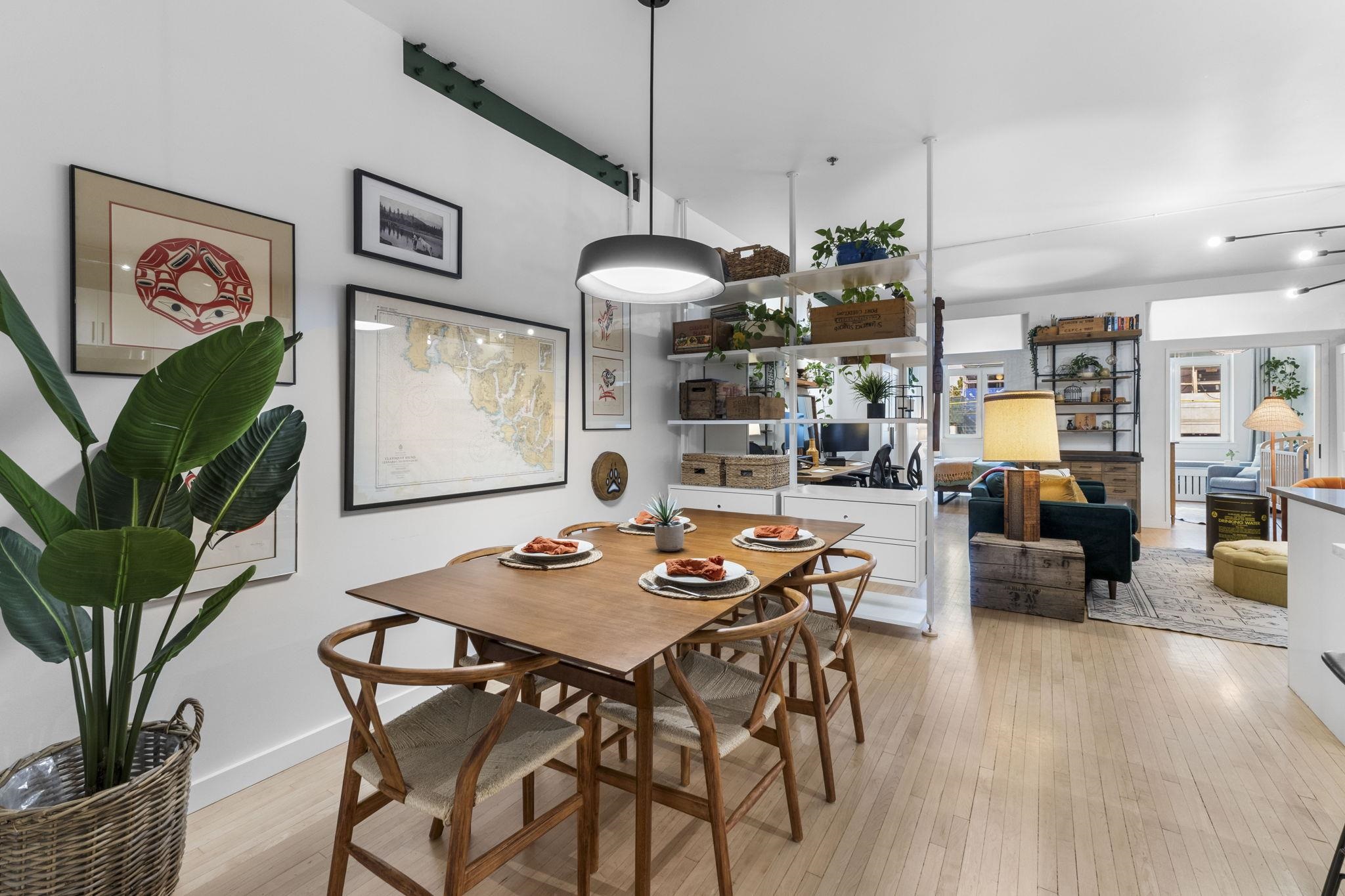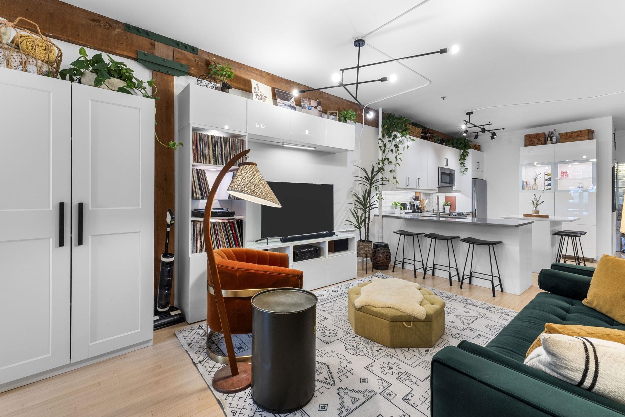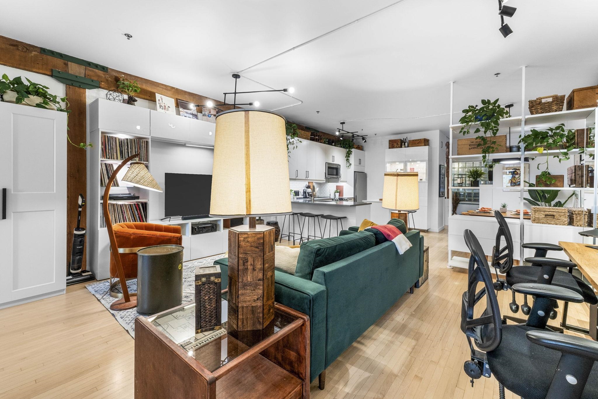 Welcome to L'Atelier - an iconic loft conversion in the heart of vibrant Hastings Sunrise. This spacious 933 sq ft home offers an open-concept layout with endless configuration possibilities to suit your lifestyle. Soaring ceilings, large windows, and industrial charm make this a truly unique living space. Just steps to trendy cafes, breweries, parks, and shops, with Commercial Drive and Downtown less than a 10-minute bike ride away. Live where culture meets convenience in one of Vancouver's most dynamic neighborhoods. Perfect for creatives, professionals, or anyone seeking an urban lifestyle with character. Kitchen Update in 2022, Bathroom in 2023, with beautiful refinished original hardwood flooring. An absolute must see! Open House Sept 13 + 14 1-3 PM