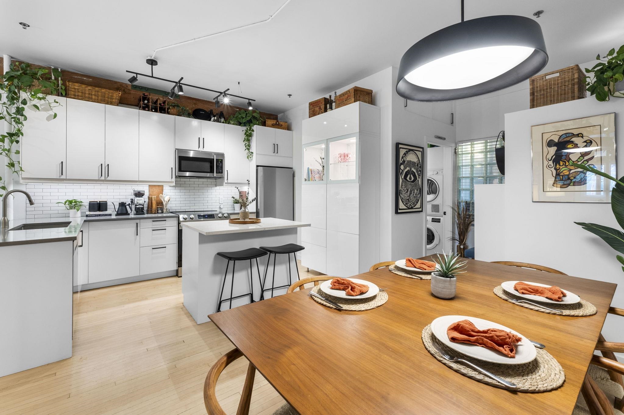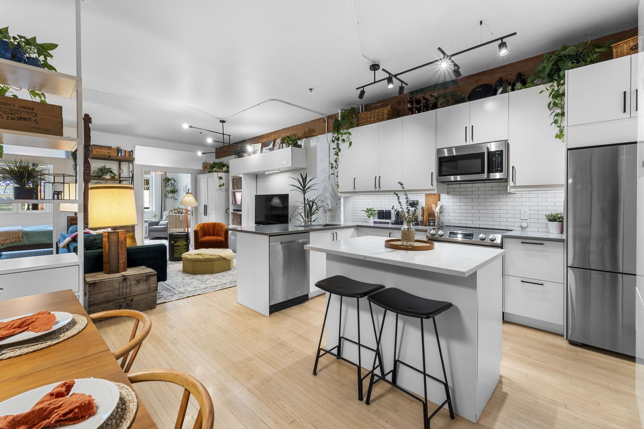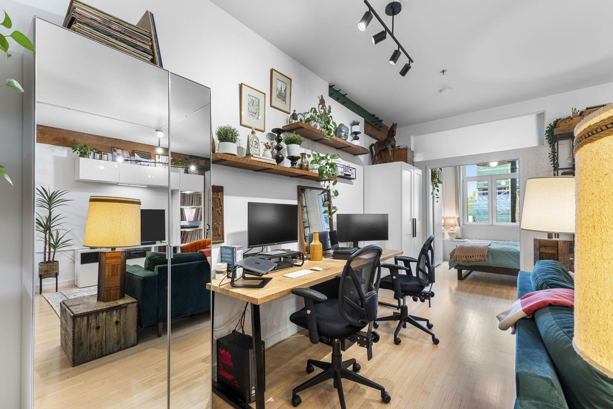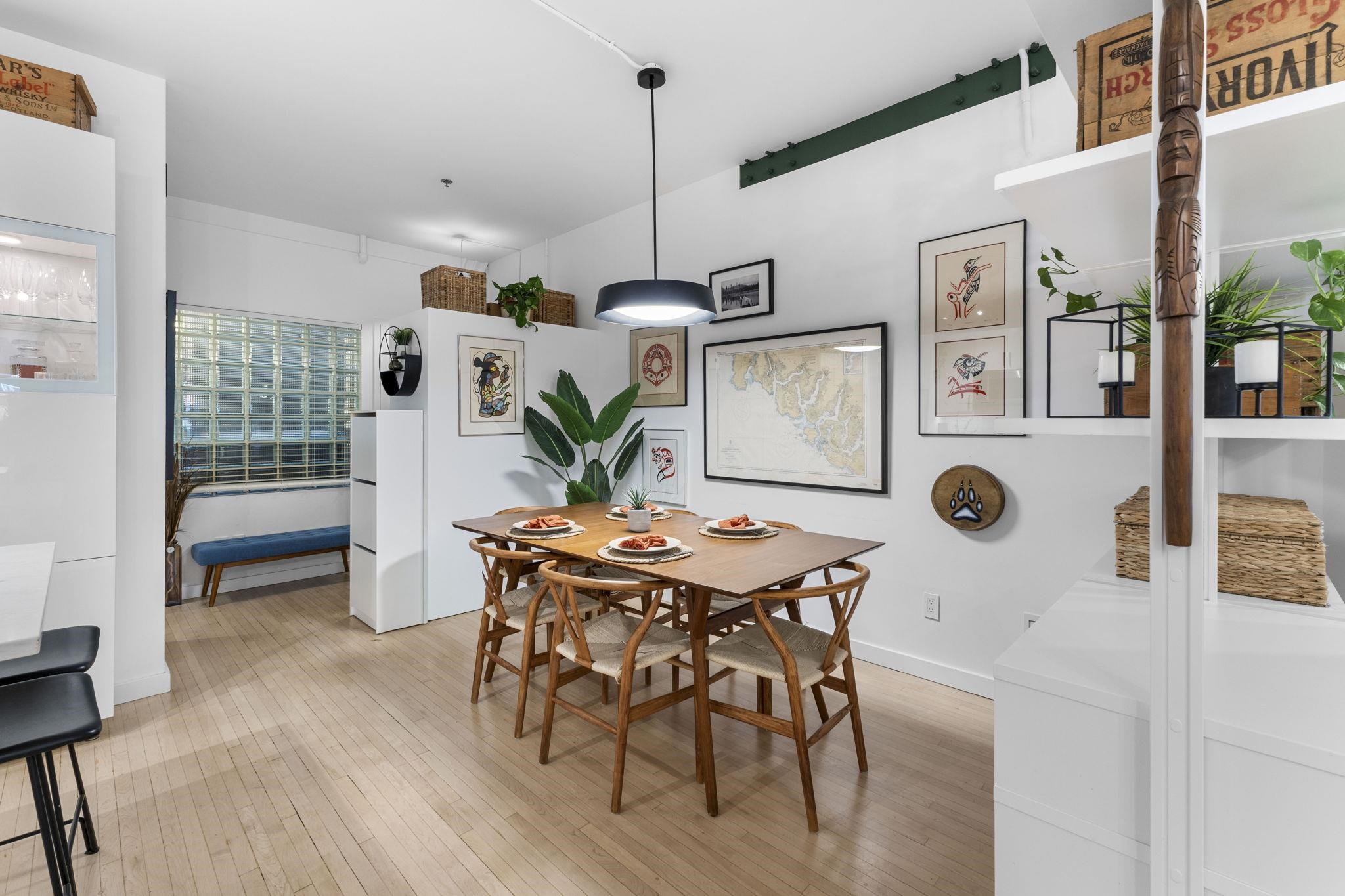Welcome to L'Atelier - an iconic loft conversion in the heart of vibrant Hastings Sunrise. This spacious 933 sq ft home offers an open-concept layout with endless configuration possibilities to suit your lifestyle. Soaring ceilings, large windows, and industrial charm make this a truly unique living space. Just steps to trendy cafes, breweries, parks, and shops, with Commercial Drive and Downtown less than a 10-minute bike ride away. Live where culture meets convenience in one of Vancouver's most dynamic neighborhoods. Perfect for creatives, professionals, or anyone seeking an urban lifestyle with character. Kitchen Update in 2022, Bathroom in 2023, with beautiful refinished original hardwood flooring. An absolute must see! Open House Sept 13 + 14 1-3 PM