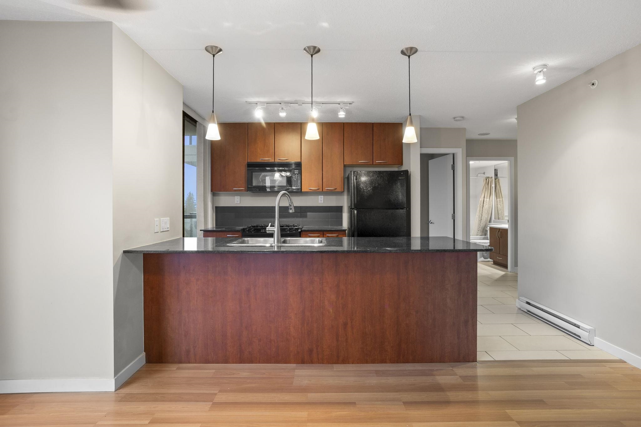Welcome to Arcadia West by Bosa! This bright 1,000+ sqft home is filled with sunlight and boasts stunning mountain views. The functional layout features a spacious bedroom, dining area and living room with fireplace, oversized windows and a private balcony. The kitchen impresses with a stylish tiled backsplash, stone countertops, gas stove and newer appliances. Includes a coveted parking space with easy building access and a large storage locker. Arcadia West offers a courtyard, clubhouse, gym, hot tub and party room. Steps to Highgate shopping, coffee shops, library, community centre, and Edmonds Skytrain. Ideal for first-time buyers or investors—move-in ready and perfectly priced!