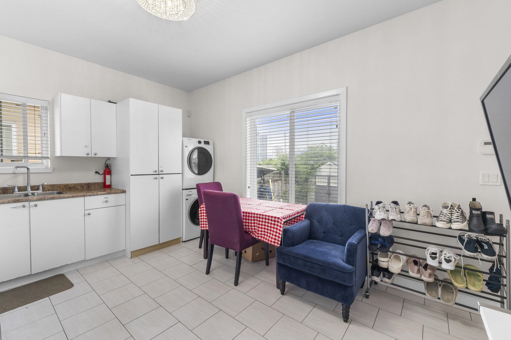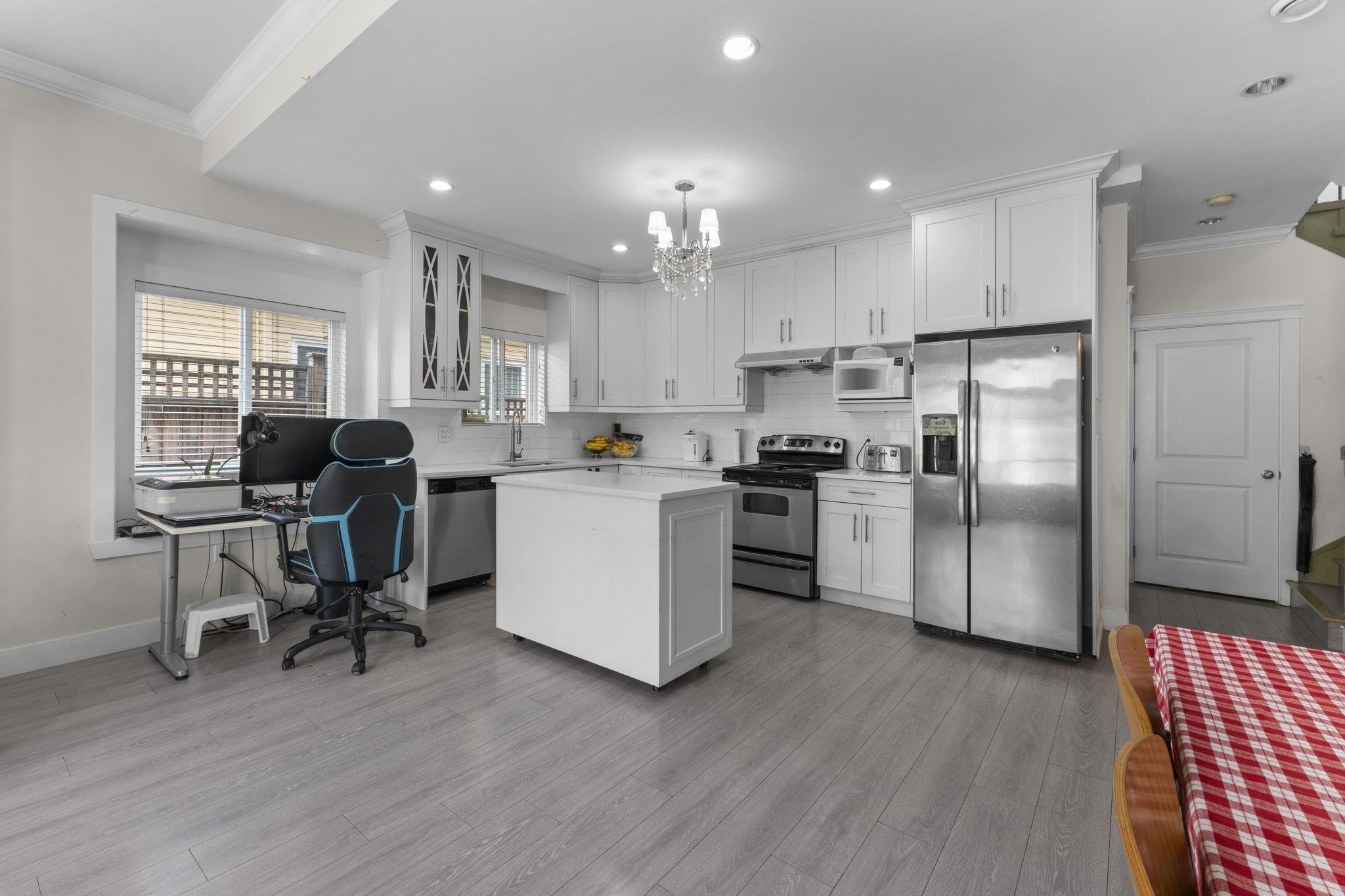 Charming and spacious 2-storey half duplex in Central Burnaby with 6 bedrooms, 3.5 bathrooms, 2 kitchens, and over 2,000 sq ft of living space. The open-concept main floor features radiant in-floor heating, a gas fireplace, and a well-equipped kitchen with ample cabinetry—perfect for family living and entertaining. Ideal for multi-generational households or investors, with suite and separate entry. Bright, airy, and thoughtfully designed. Located minutes from BCIT, parks, shopping, restaurants, highways, and transit. A rare opportunity in a prime location—don't miss out! Book your showing today!