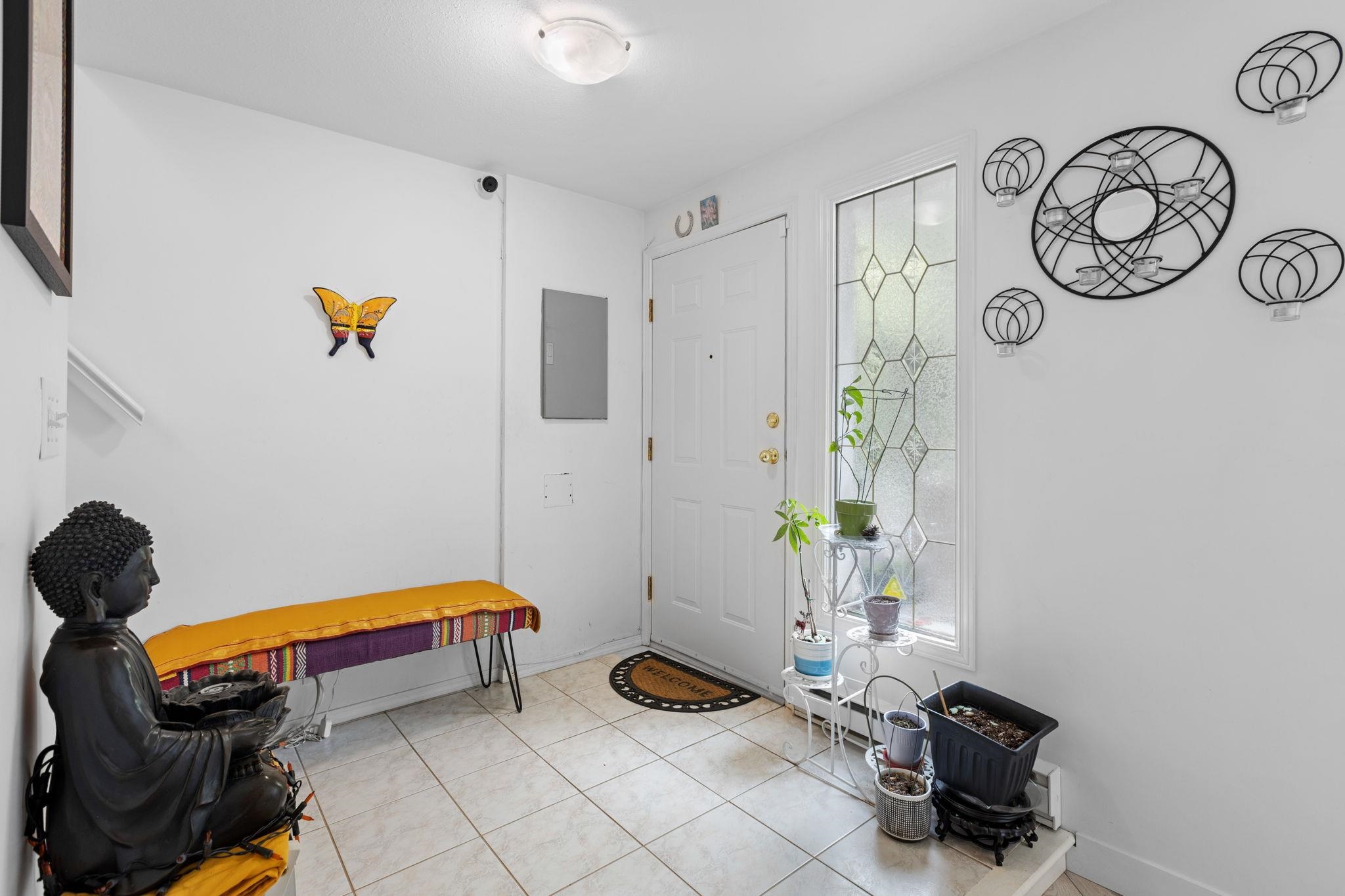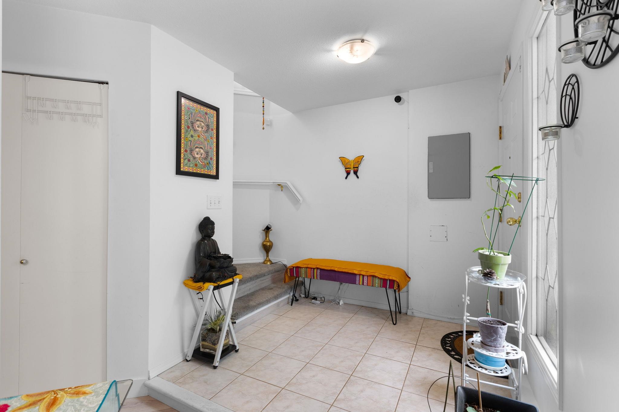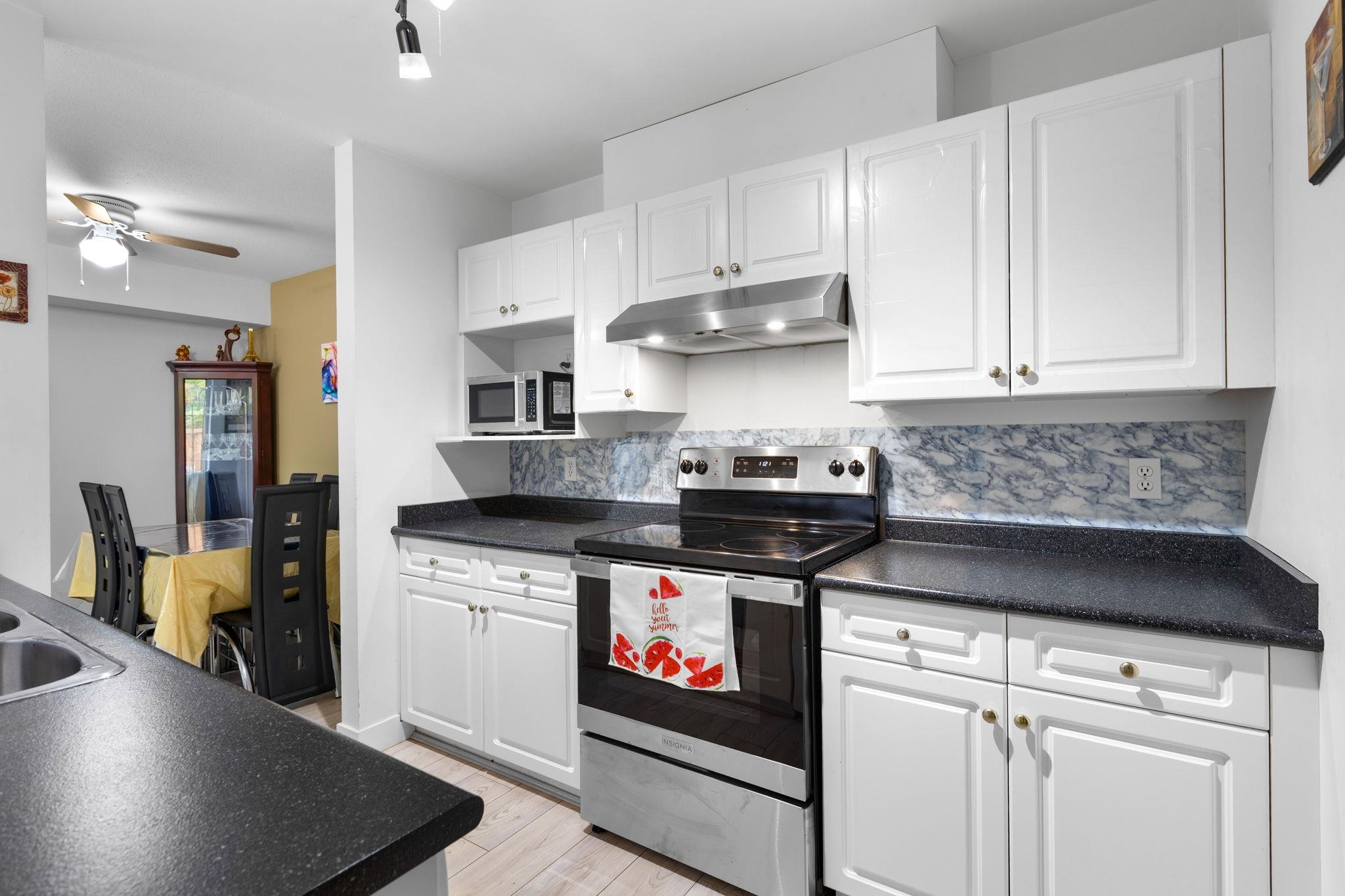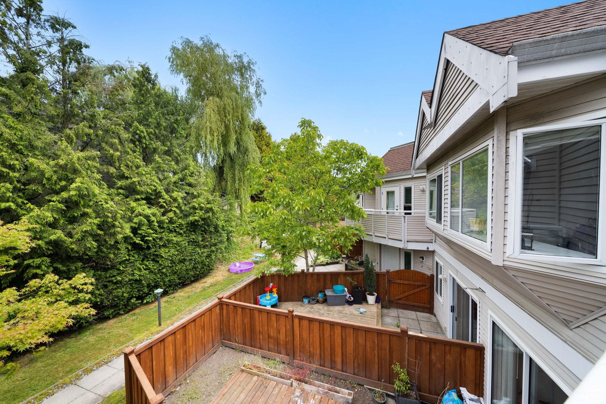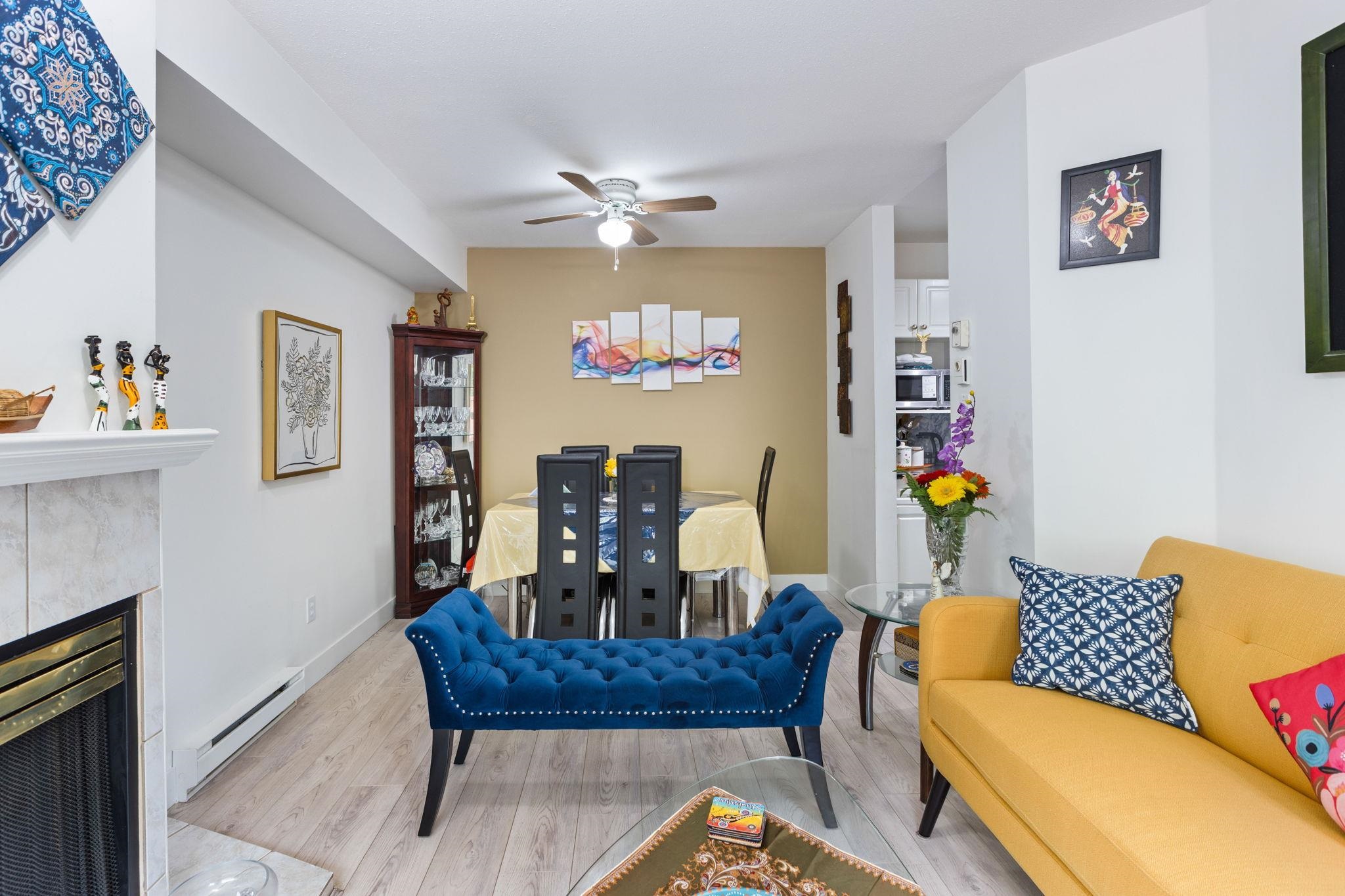 Welcome to Royal Gardens! This updated 2 bed, 1.5 bath Burnaby townhouse features a private fenced yard and bright, open-concept main floor. Spacious living and dining areas with a modern kitchen—ideal for daily living and entertaining. Upstairs offers a large primary bedroom with bay window, second bedroom with a balcony, and versatile den. Flex space for a gym, playroom, or future suite (with strata approval). Updates include: new flooring, paint, blinds, lighting, counters, new appliances, water tank, and wooden deck. Bonus: gas fireplace, storage locker, low strata fee, secure parking. Very walkable (score 85), close to parks, transit, shops, restaurants and schools: Second Street Community School, Cariboo Hill Secondary, and École des Pionniers. Must See!
