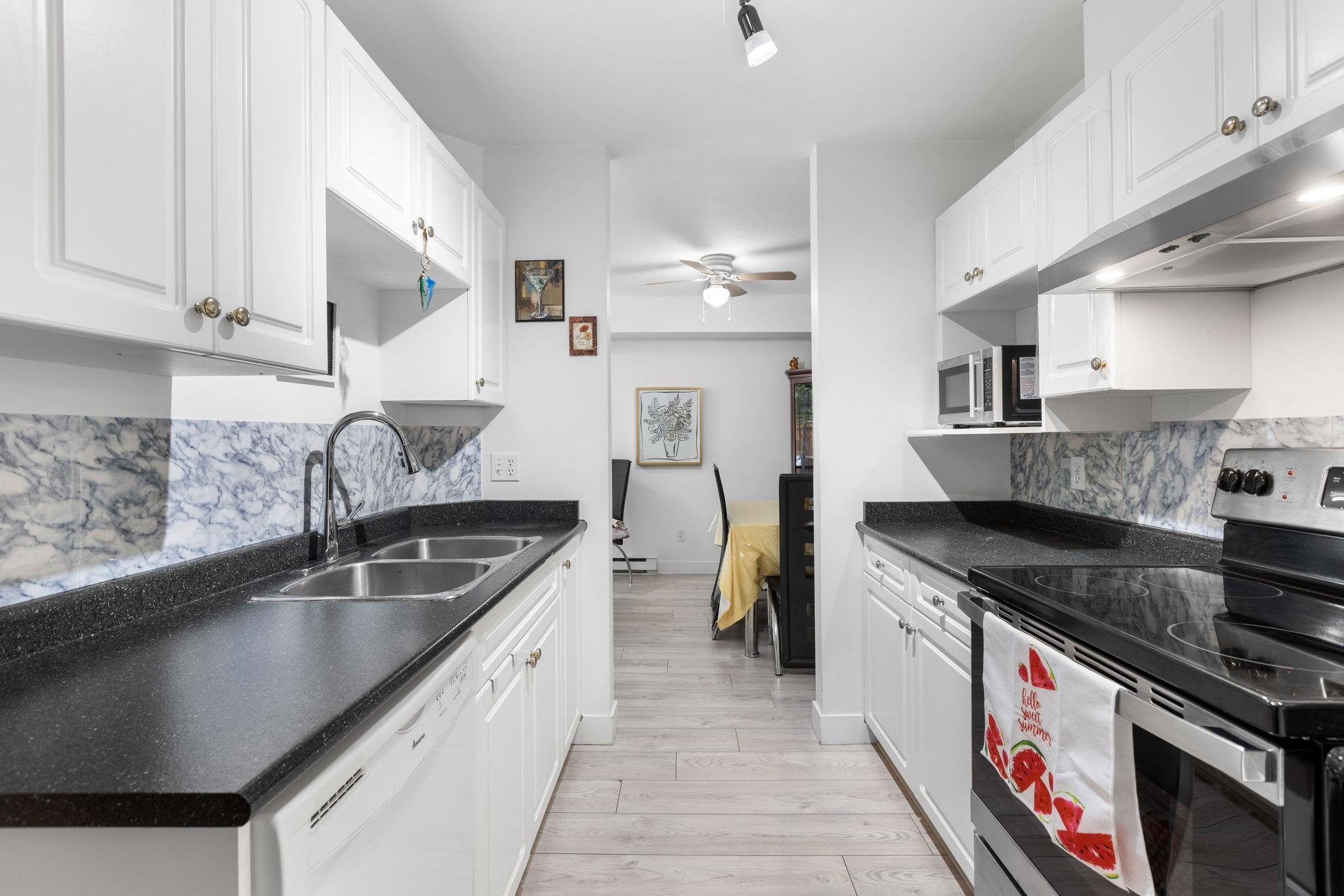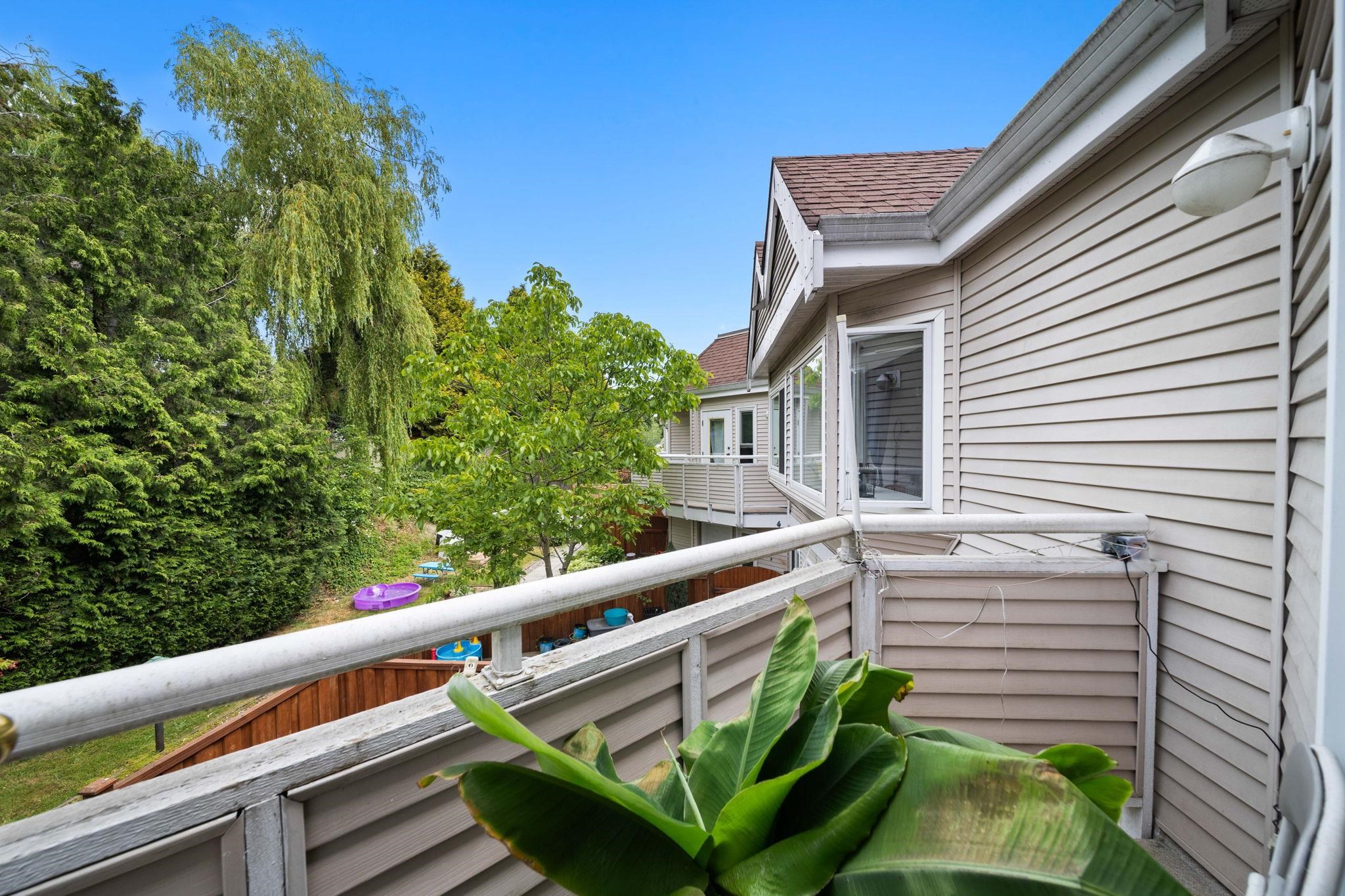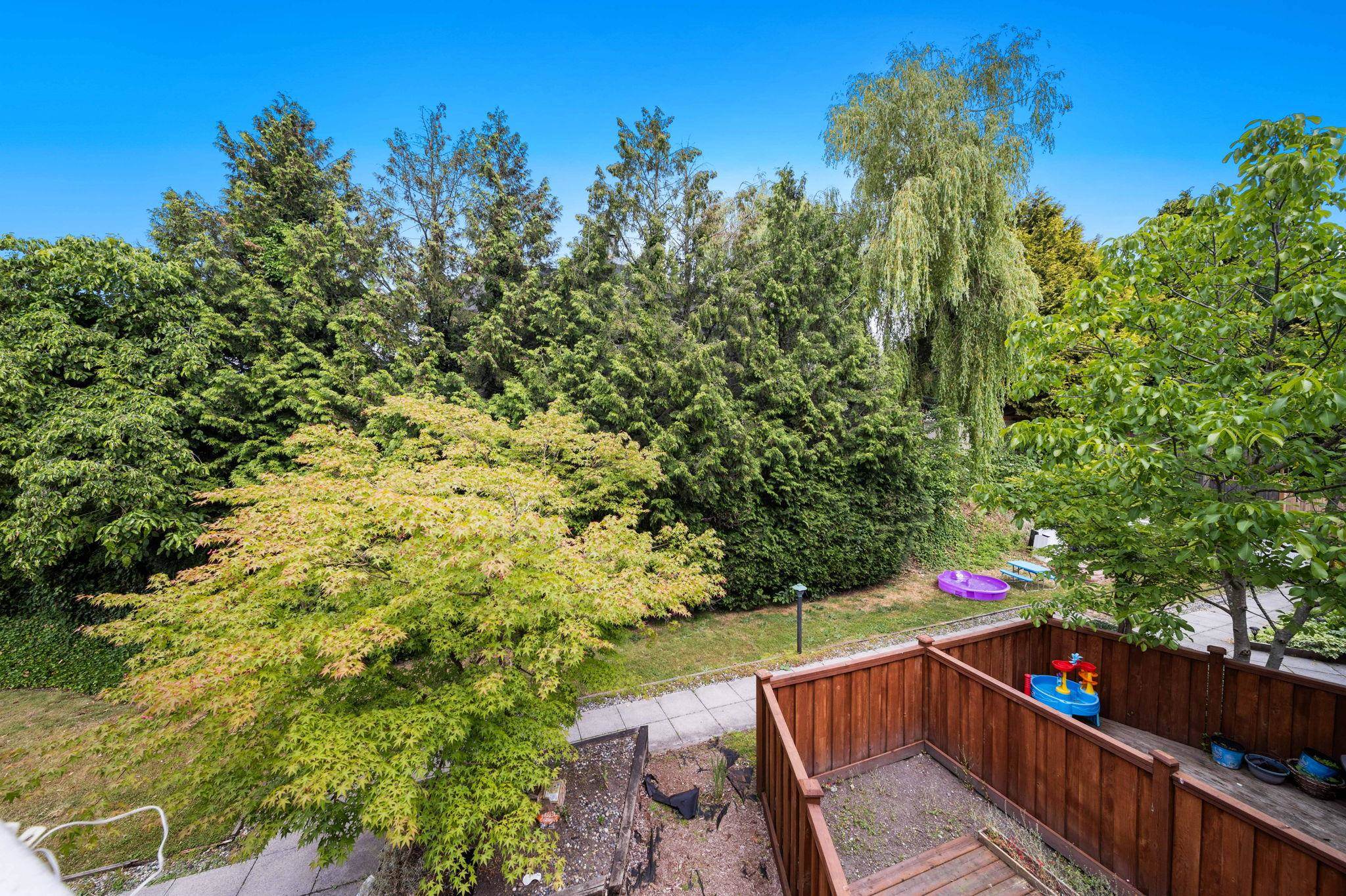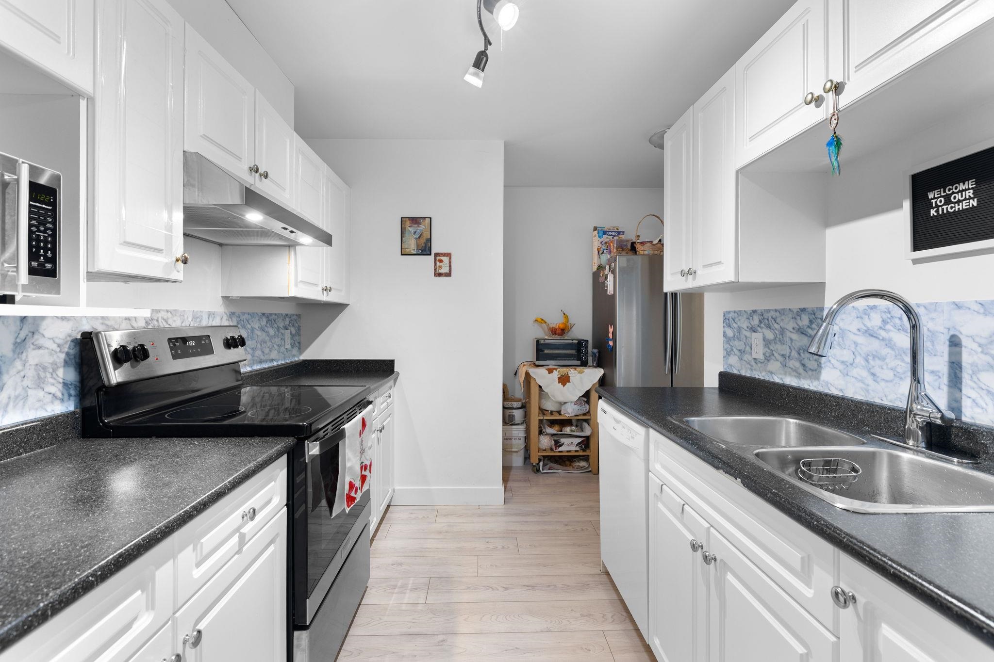 Welcome to Royal Gardens! This updated 2 bed, 1.5 bath Burnaby townhouse features a private fenced yard and bright, open-concept main floor. Spacious living and dining areas with a modern kitchen—ideal for daily living and entertaining. Upstairs offers a large primary bedroom with bay window, second bedroom with a balcony, and versatile den. Flex space for a gym, playroom, or future suite (with strata approval). Updates include: new flooring, paint, blinds, lighting, counters, new appliances, water tank, and wooden deck. Bonus: gas fireplace, storage locker, low strata fee, secure parking. Very walkable (score 85), close to parks, transit, shops, restaurants and schools: Second Street Community School, Cariboo Hill Secondary, and École des Pionniers. Must See!