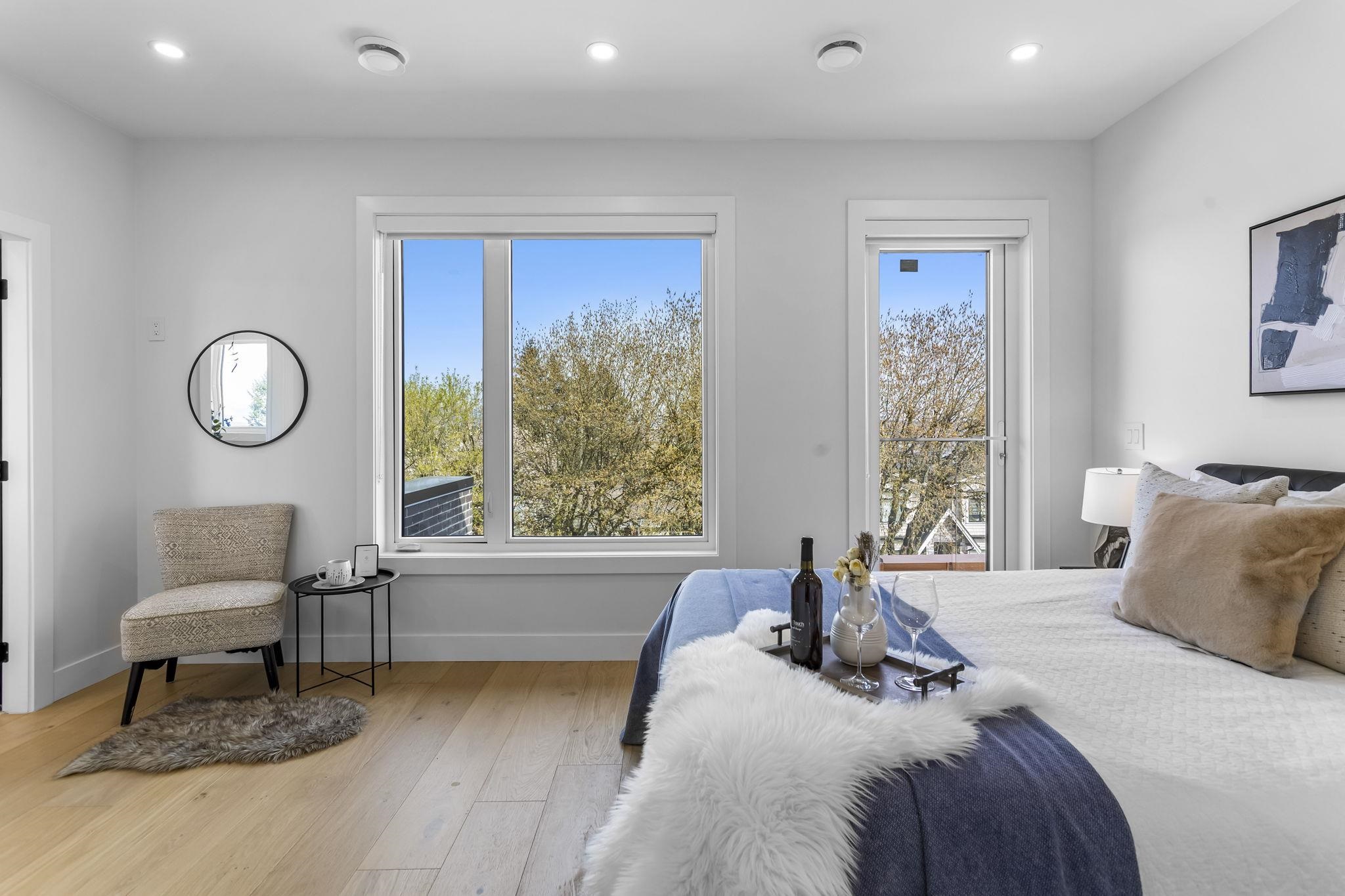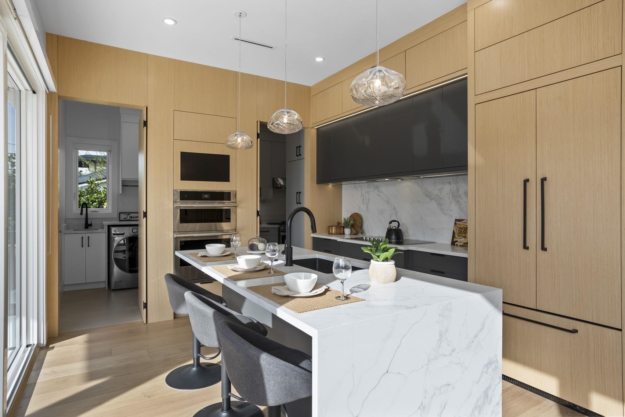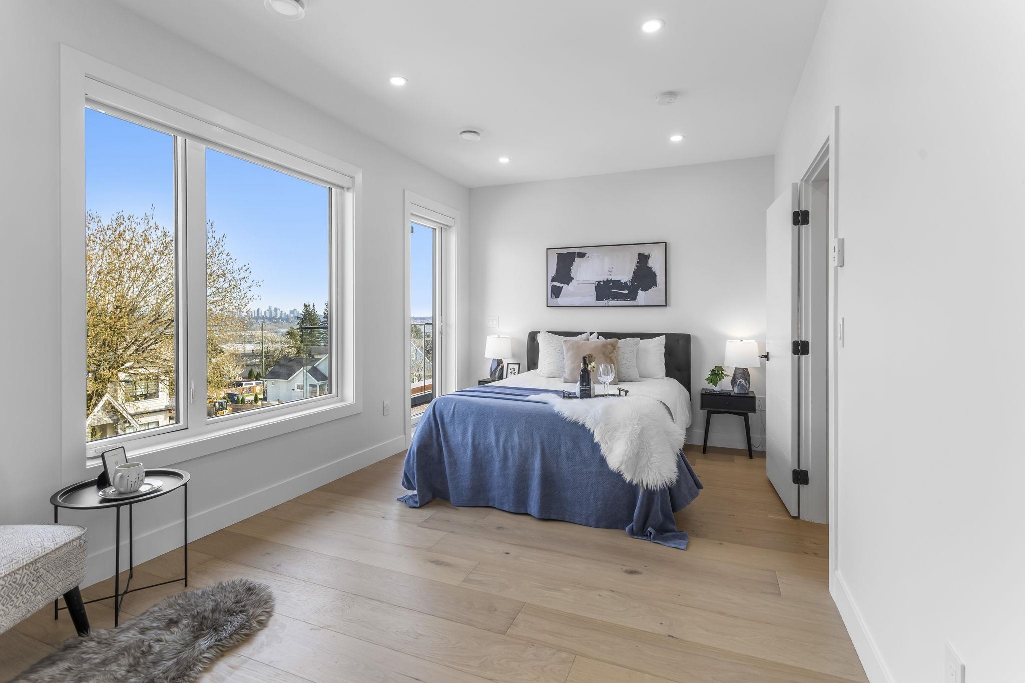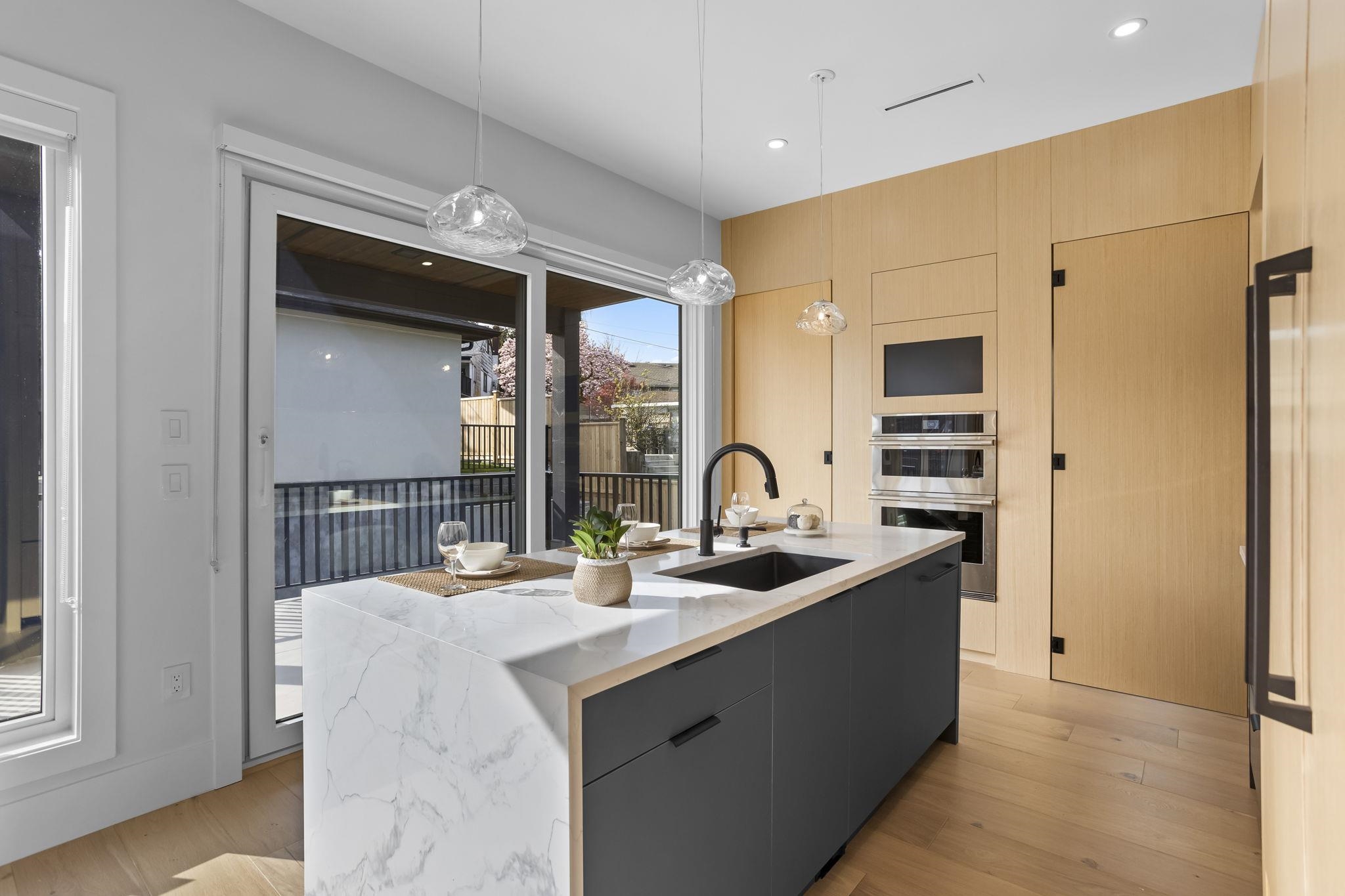 Stunning 8 Bed, 7.5 Bath home on prestigious Chestnut Street in New Westminster! Thoughtfully designed, this brand new property seamlessly combines elegance and function. This home has it all: wide plank oak floors, a gourmet kitchen with custom cabinetry, quartz counters, and a waterfall island. Upstairs offers a rare 4 bedroom layout, including a spacious primary suite with walk-in closet, spa-like ensuite bathroom, and private deck. Downstairs includes a legal suite with separate entrance. BONUS: a beautifully finished laneway home adds flexibility and income potential. A perfect blend of luxury, layout, and location. Don't miss your opportunity! Book a showing now!