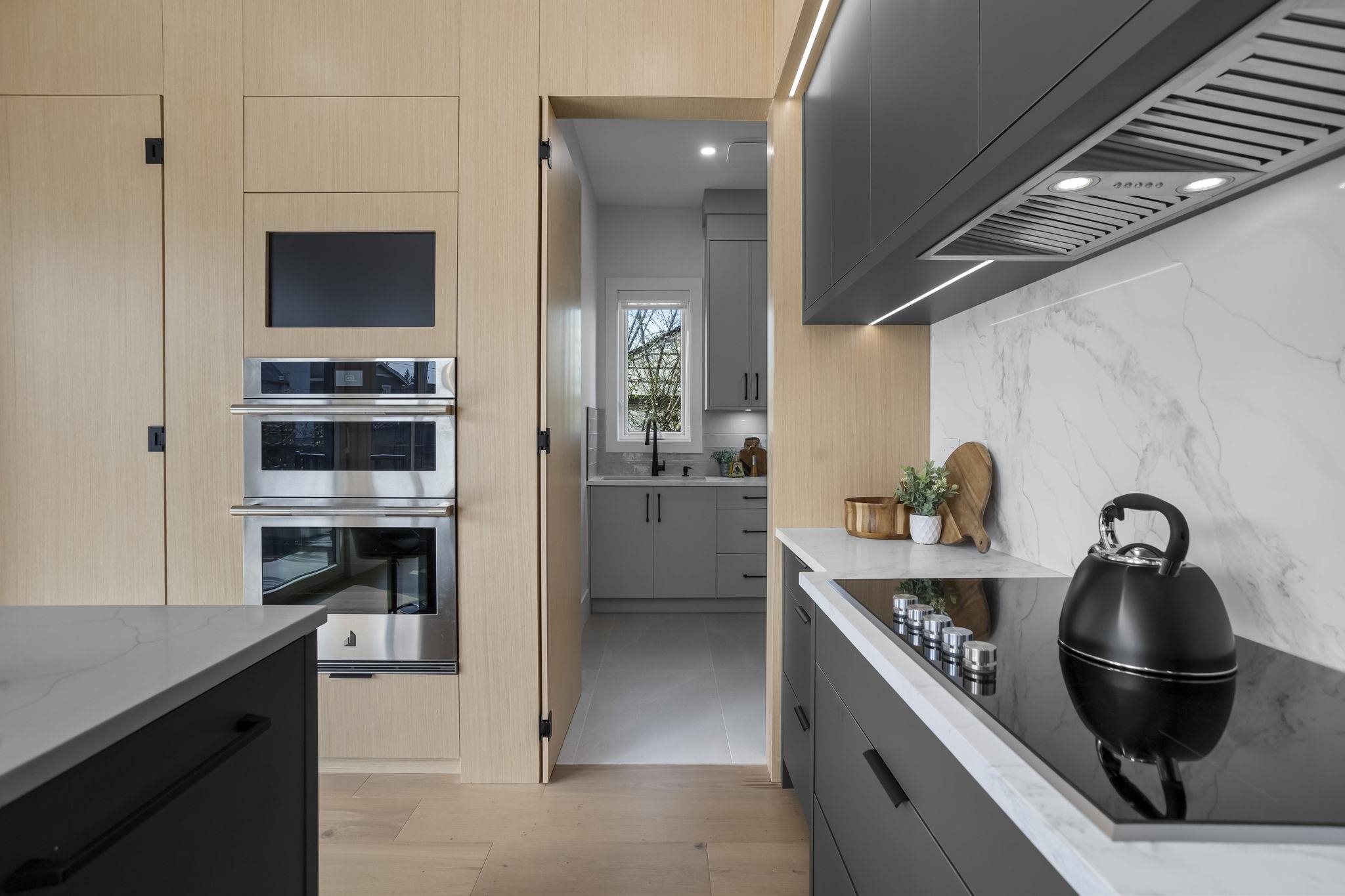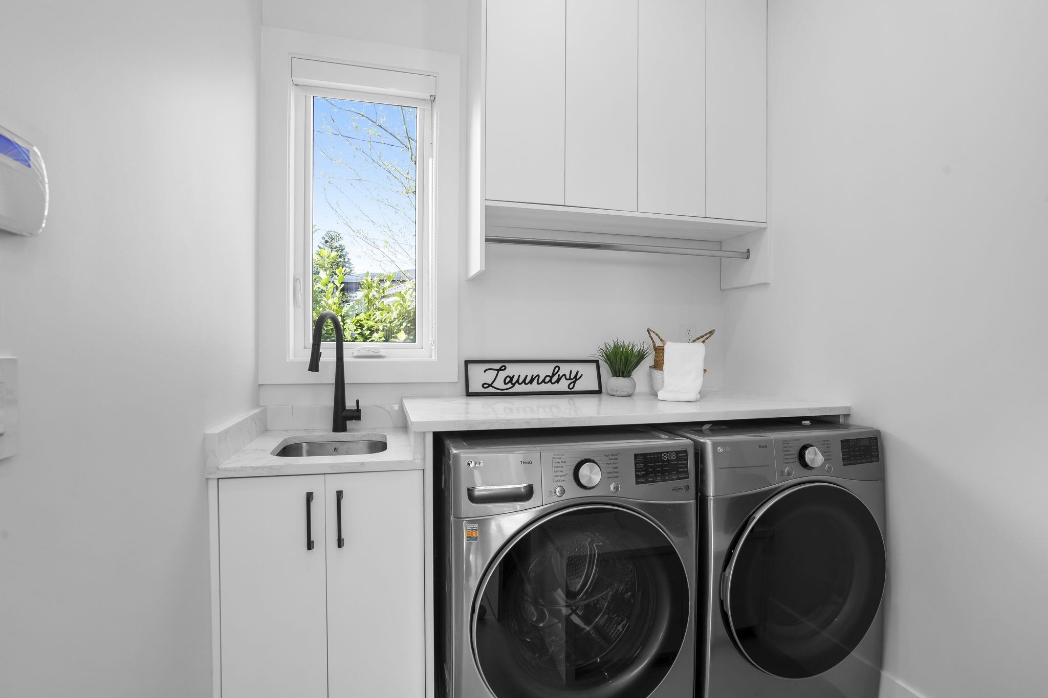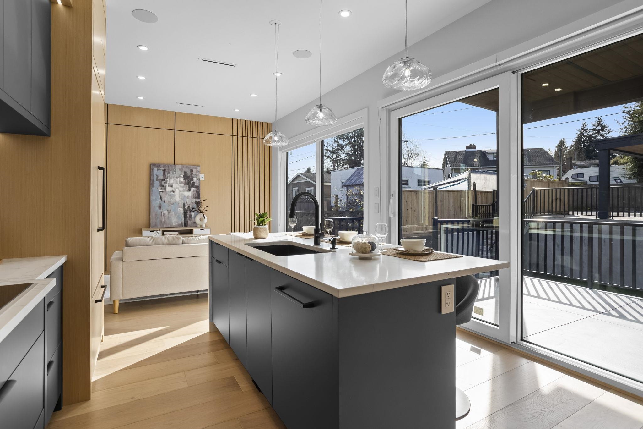 Stunning 8 Bed, 7.5 Bath home on prestigious Chestnut Street in New Westminster! Thoughtfully designed, this brand new property seamlessly combines elegance and function. This home has it all: wide plank oak floors, a gourmet kitchen with custom cabinetry, quartz counters, and a waterfall island. Upstairs offers a rare 4 bedroom layout, including a spacious primary suite with walk-in closet, spa-like ensuite bathroom, and private deck. Downstairs includes a legal suite with separate entrance. BONUS: a beautifully finished laneway home adds flexibility and income potential. A perfect blend of luxury, layout, and location. Don't miss your opportunity! Book a showing now!