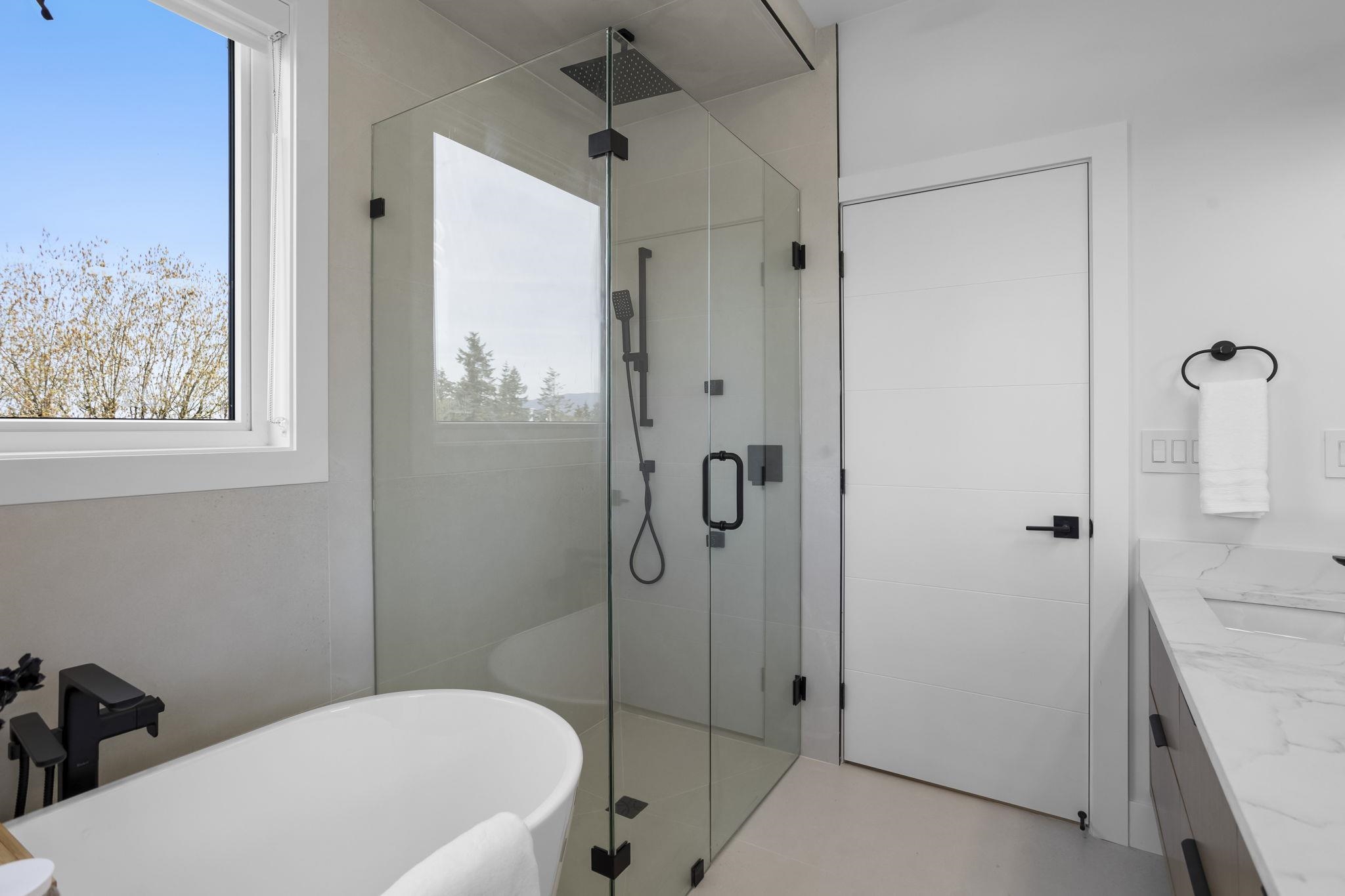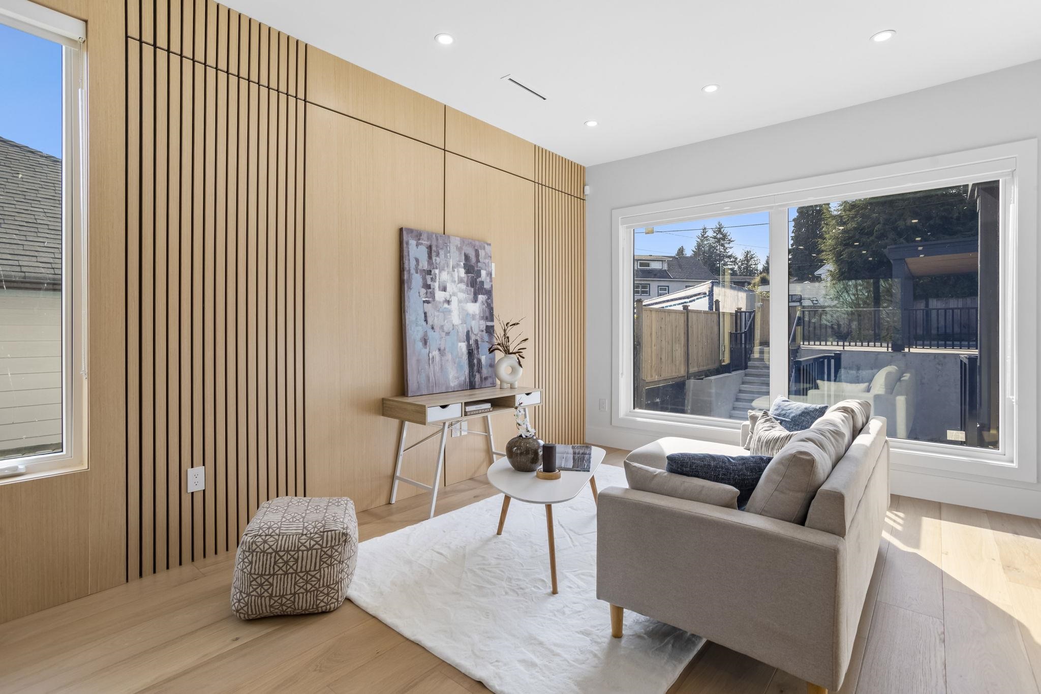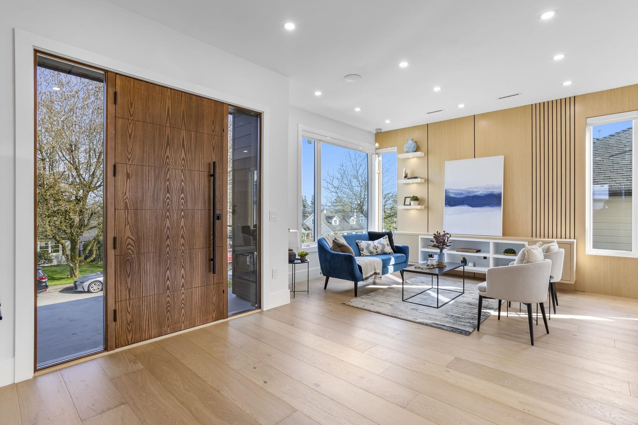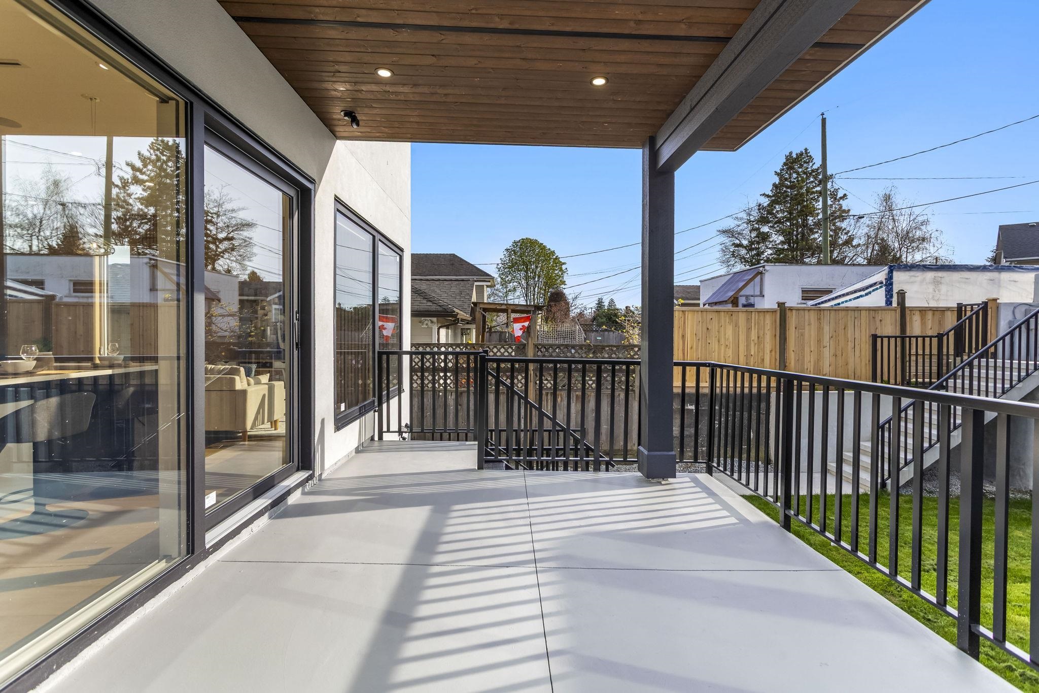 Stunning 8 Bed, 7.5 Bath home on prestigious Chestnut Street in New Westminster! Thoughtfully designed, this brand new property seamlessly combines elegance and function. This home has it all: wide plank oak floors, a gourmet kitchen with custom cabinetry, quartz counters, and a waterfall island. Upstairs offers a rare 4 bedroom layout, including a spacious primary suite with walk-in closet, spa-like ensuite bathroom, and private deck. Downstairs includes a legal suite with separate entrance. BONUS: a beautifully finished laneway home adds flexibility and income potential. A perfect blend of luxury, layout, and location. Don't miss your opportunity! Book a showing now!